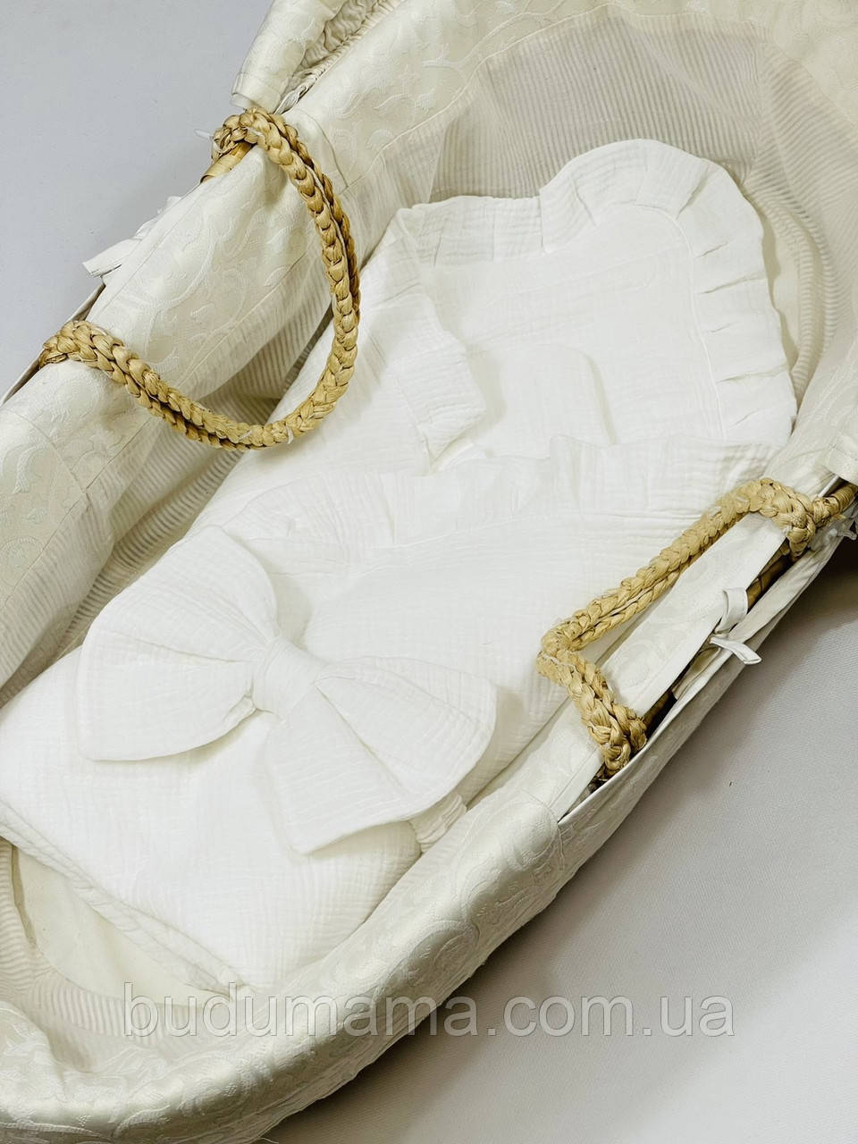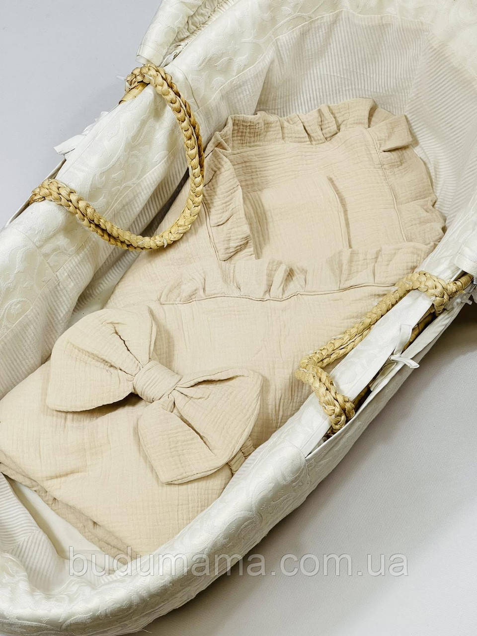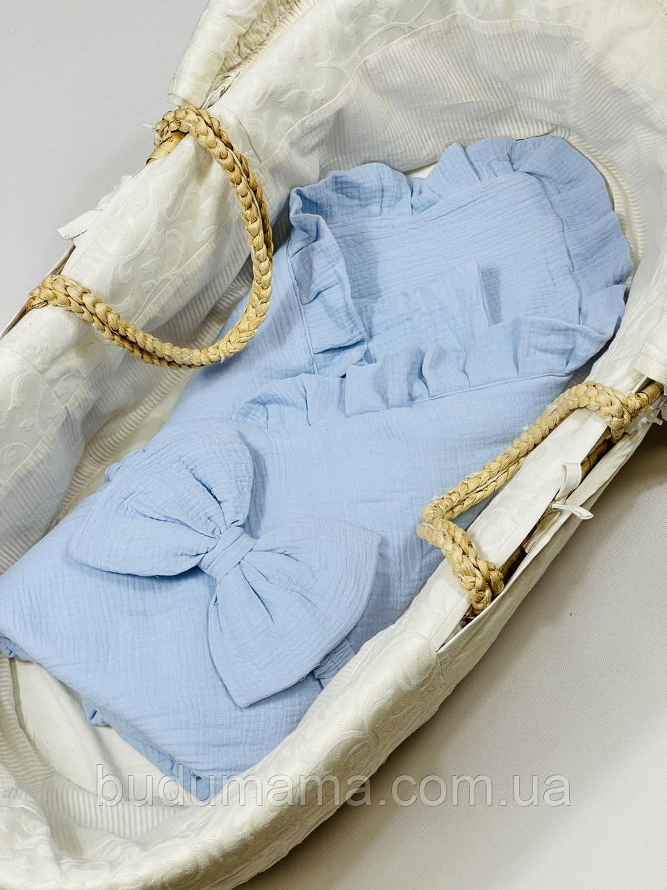 Мусліновий конверт-ковдра з бантом на гумці. Ущільнений тонким синтепоном.