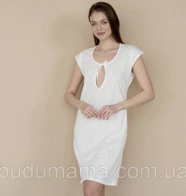 Сорочка з вирізом на грудях на зав'язках бавовняна сорочка на роді в родзал для вагітних для годування